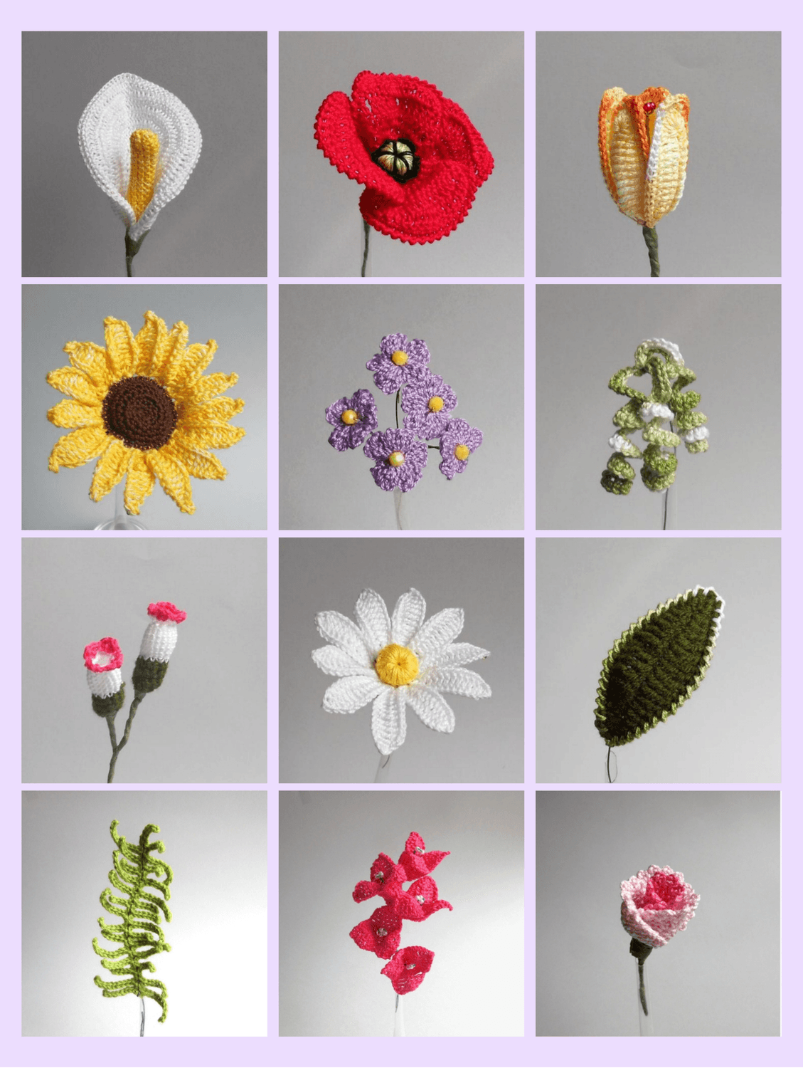 Dentro de nuestro ebook “Flores a Crochet Premium” podrás encontrar diferentes tipos de flores y plantas